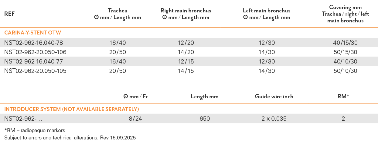 Rely on a proven solution for bridging airway stenoses at the carina: the Carina-Y-Stent from MICRO-TECH. First developed in 2006, it has since been continuously refined. Our many years of experience with this specialised stent design are reflected in every detail of the product. The angled Y-shape ensures stable positioning and secure placement in stenoses of the trachea and main bronchi – especially at the carina. The specially developed introducer system enables precise and controlled application. Its ergonomically designed structure allows for comfortable and safe handling, while colour-coded olive tips and pull rings provide additional orientation during the release of the two bronchial arms.