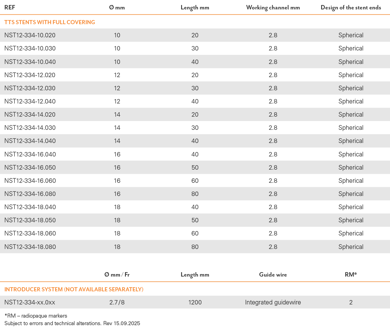 Our TTS stent portfolio includes six lengths ranging from 20 mm to 80 mm. You thus have the ideal solution at your disposal, depending on the distance that needs to be bridged.
