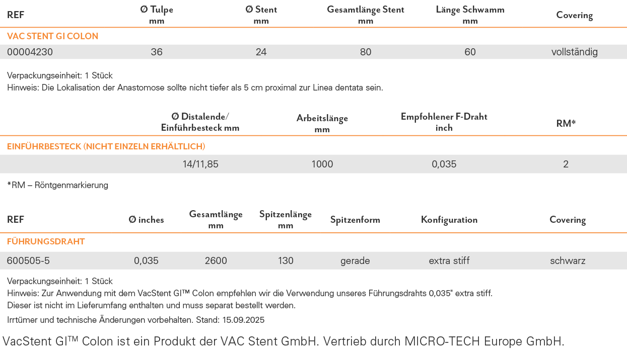 Der neue VacStent GI™ Colon ermöglicht die bewährte Kombination aus voll ummanteltem Stent und Drainage-Schwamm im Kolon. Der Stent zeichnet sich durch seine hohe Lagestabilität aus und sorgt auch bei natürlicher Peristaltik für eine zuverlässige Behandlung von Leckagen und Anastomoseninsuffizienzen. Während die Wundhöhle sicher abgedeckt wird, kann Stuhl problemlos passieren. Der Schwamm gewährleistet zudem eine kontinuierliche Drainage und unterstützt die Granulation dank des Vakuumeffekts.
